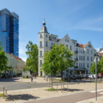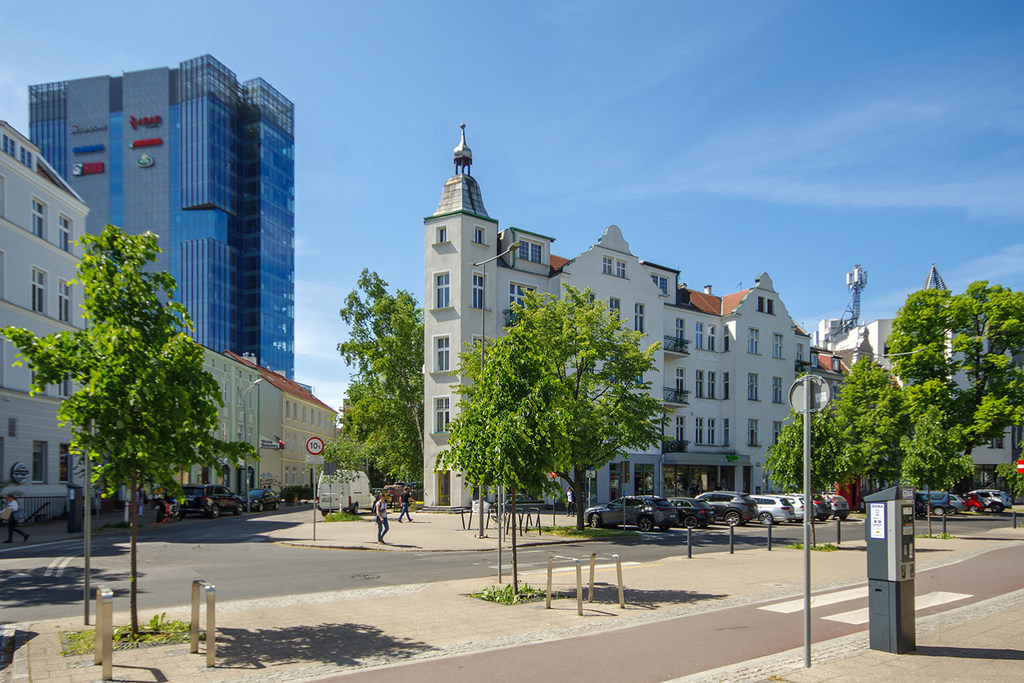 - liczne punkty usługowe i handlowe (galerie handlowe: Galeria Bałtycka, Metropolia, Manhattan), sklepy wielu branż, rynek miejski,