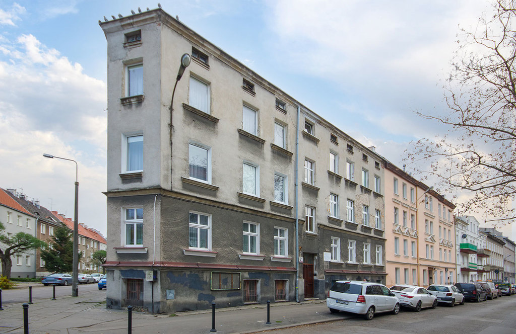 Klatka w dobrym stanie. Docieplenie budynku od strony podwórza.