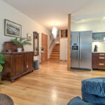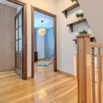 W przedpokoju dolnym znajduje się szafa wnękowa z drzwiami przesuwnymi.