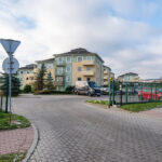 Mieszkanie znajduje się na parterze jednego z sześciu czterokondygnacyjnych budynków tworzących wspólnotę mieszkaniową w ramach osiedla wybudowanego w 2006 r. przez cenionego trójmiejskiego dewelopera Ekolan. Na terenie wspólnoty zadbana mała architektura i parking z ogólnodostępnymi miejscami parkingowymi i bramą na pilota. Wejście do budynku zabezpieczone domofonem. Osiedle ogrodzone oraz monitorowane.