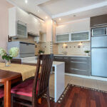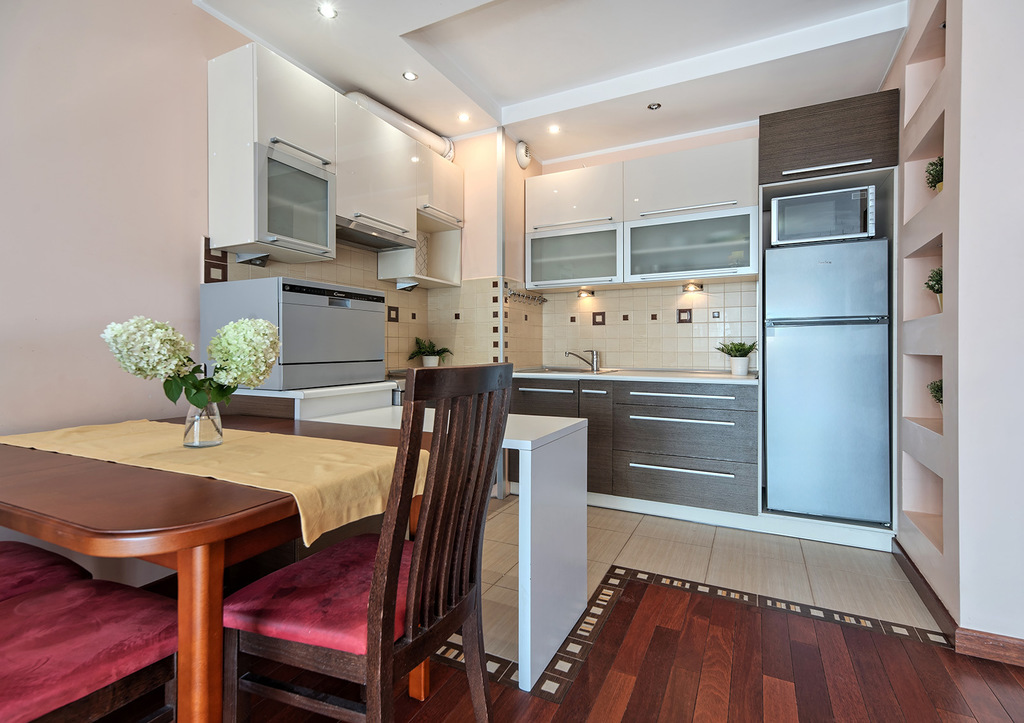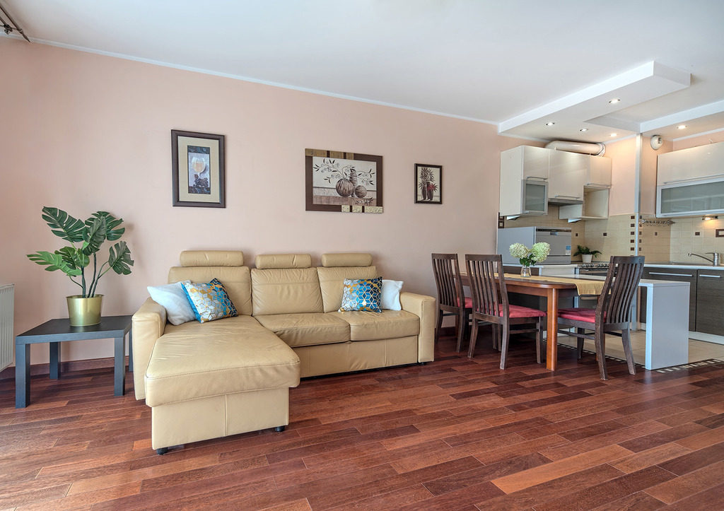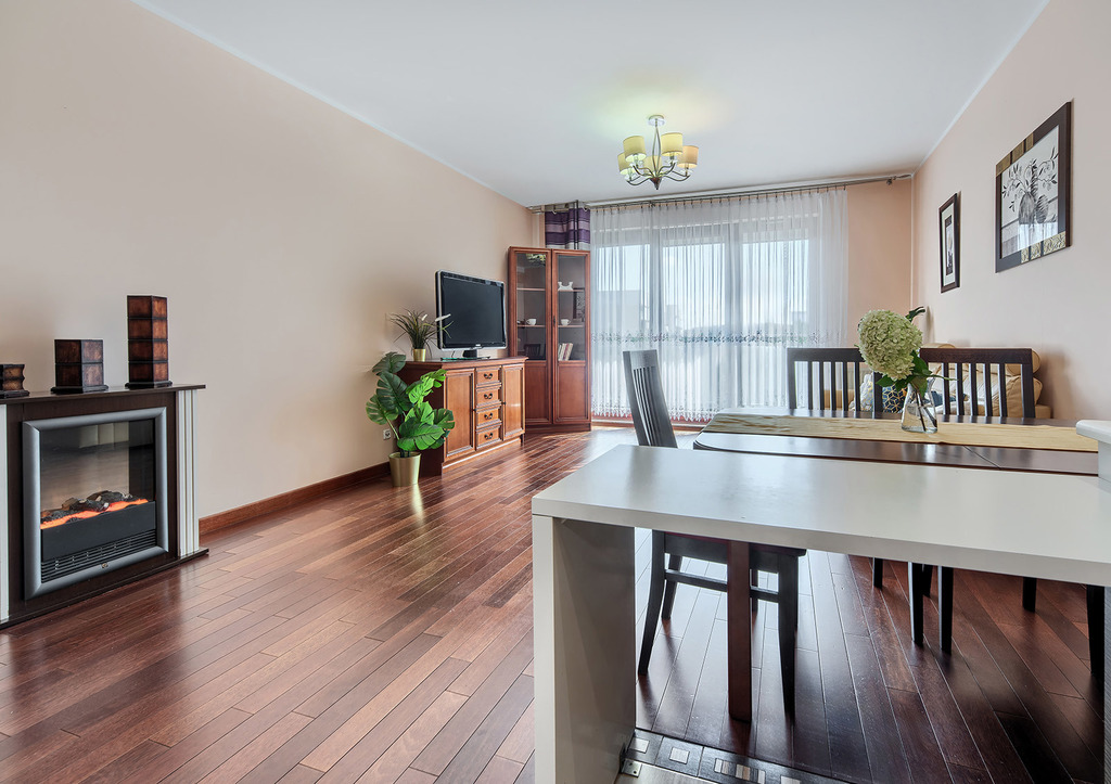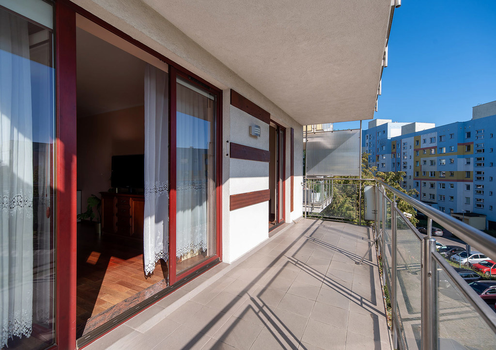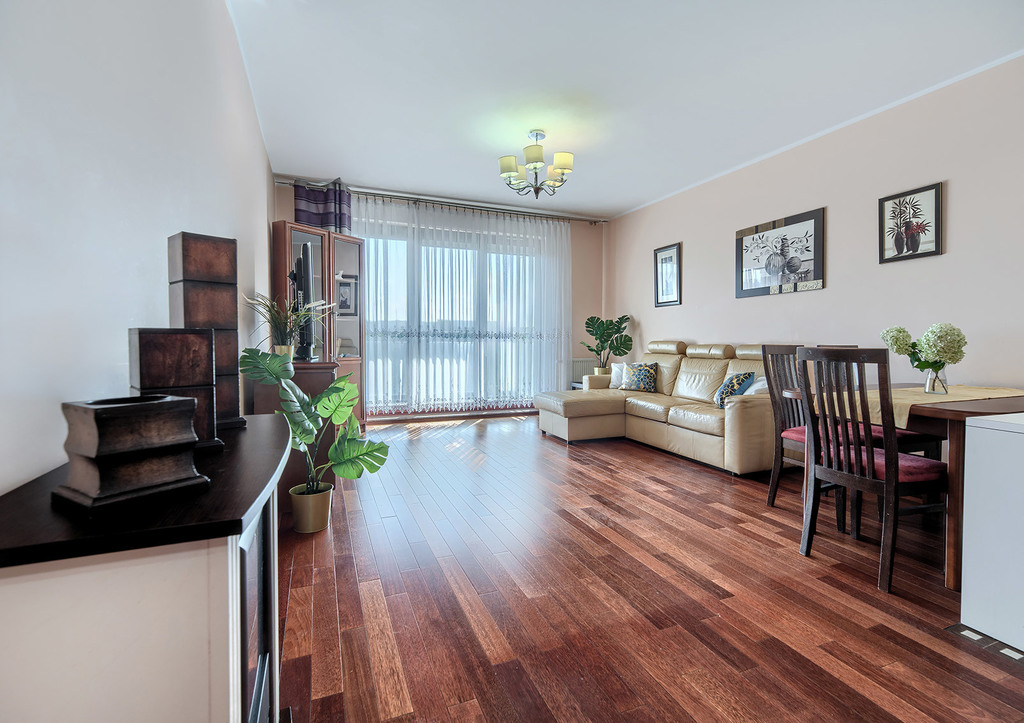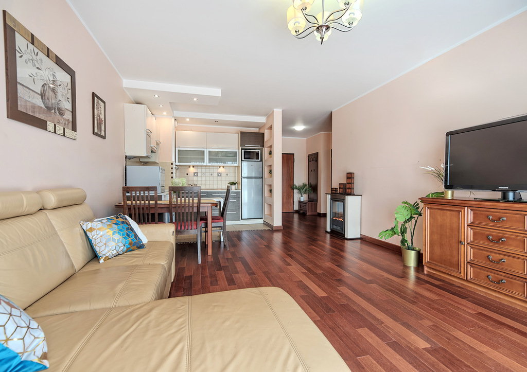 - przestronny salon z aneksem kuchennym (25,3 m2) z wyjściem na duży słoneczny balkon (12,3 m2)