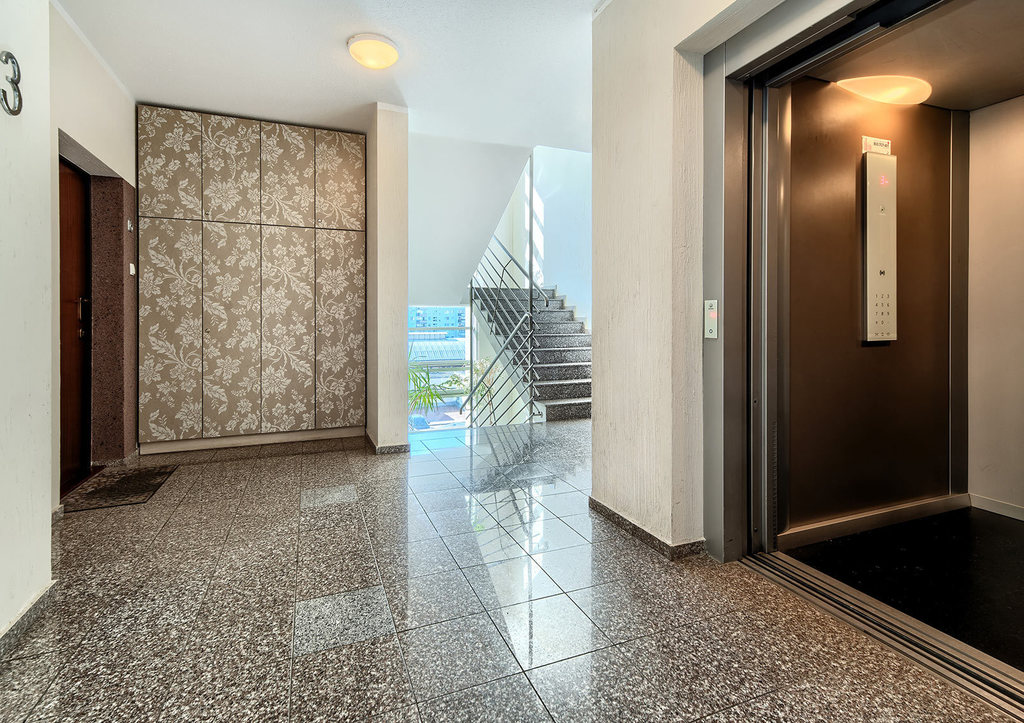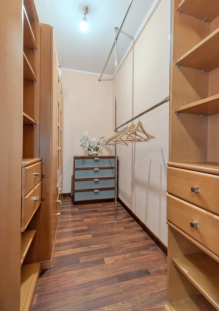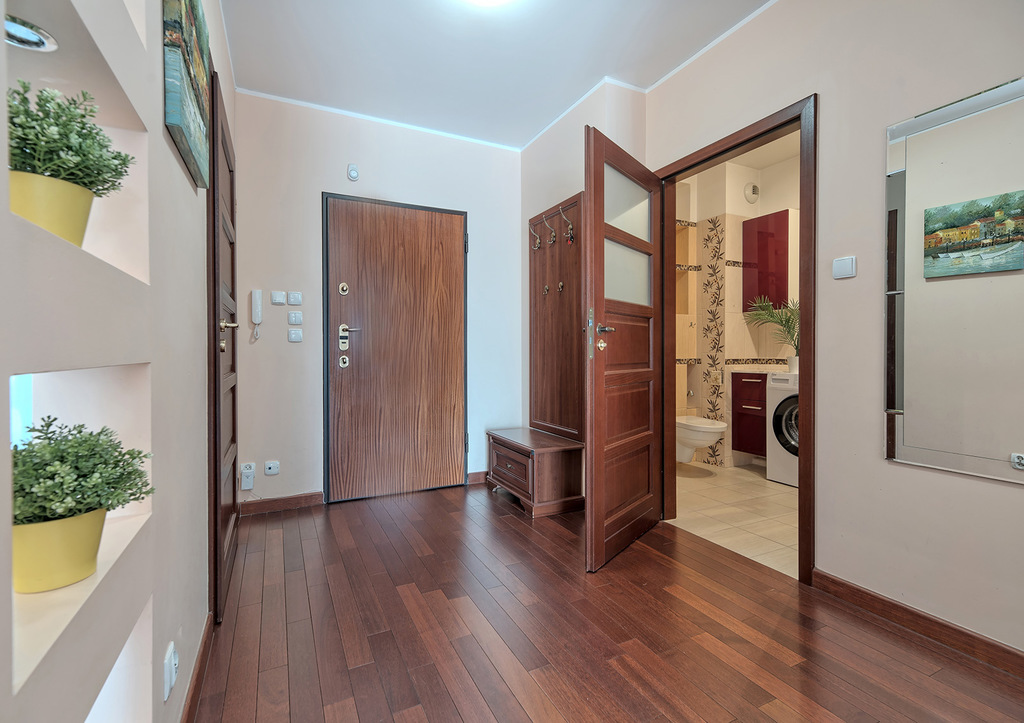 Bezpośrednio przed wejściem do mieszkania zamykany korytarz z dużą osobistą szafą