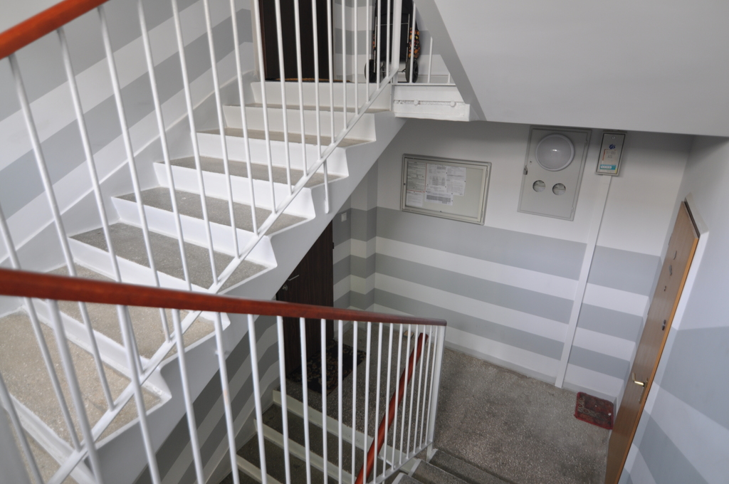 Lokal położony jest na I piętrze w III piętrowym w bloku z lat 90 tych.