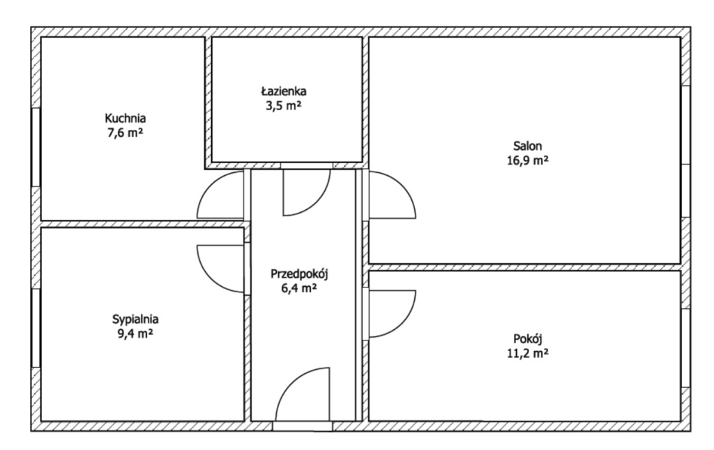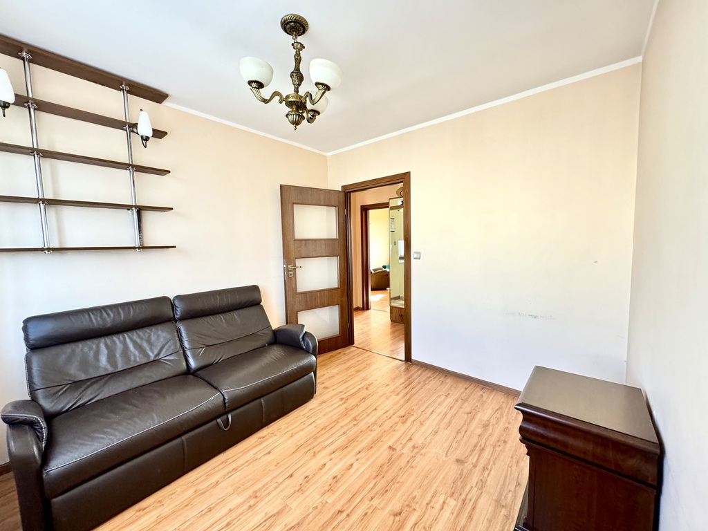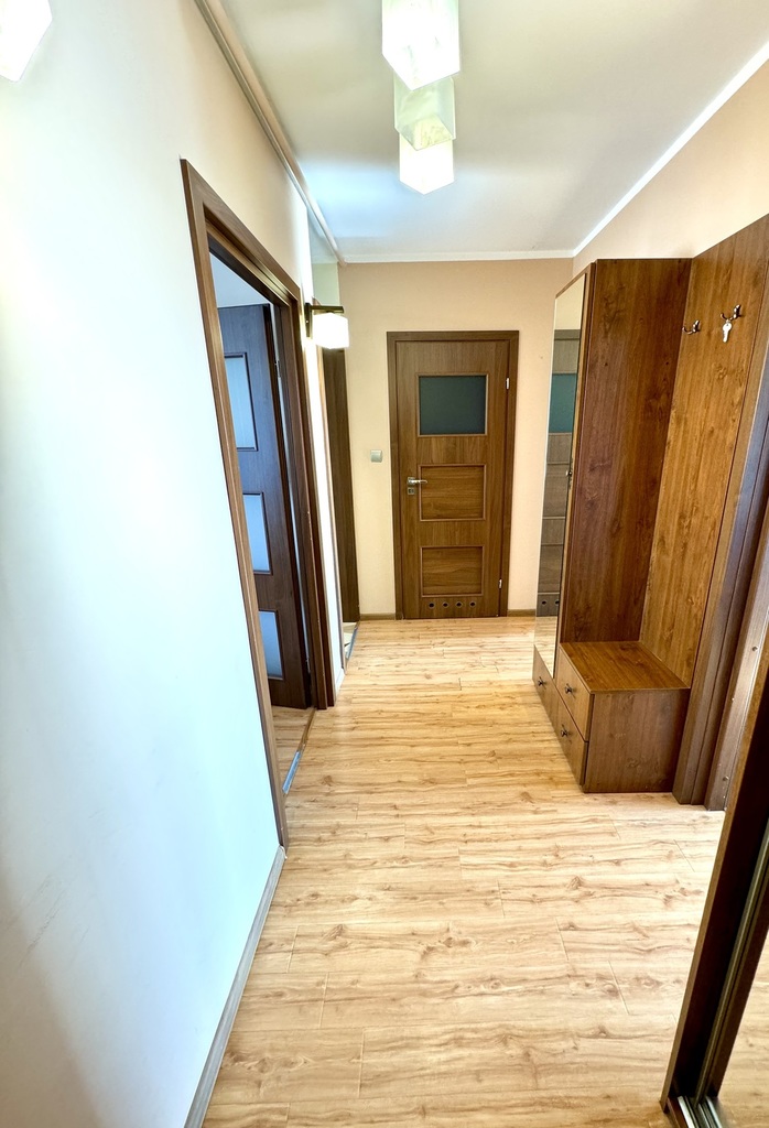 Mieszkanie składa się z trzech oddzielnych pokoi, łazienki, widnej kuchni, przedpokoju, balkonu, piwnicy oraz schowka na półpiętrze.