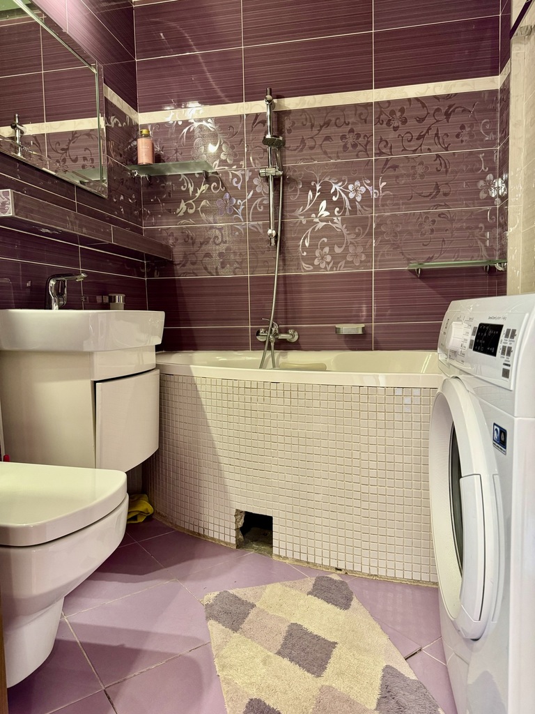 Łazienka: 3,5m² – Łazienka z miejscem na pralkę, suszarkę i dużą wannę.