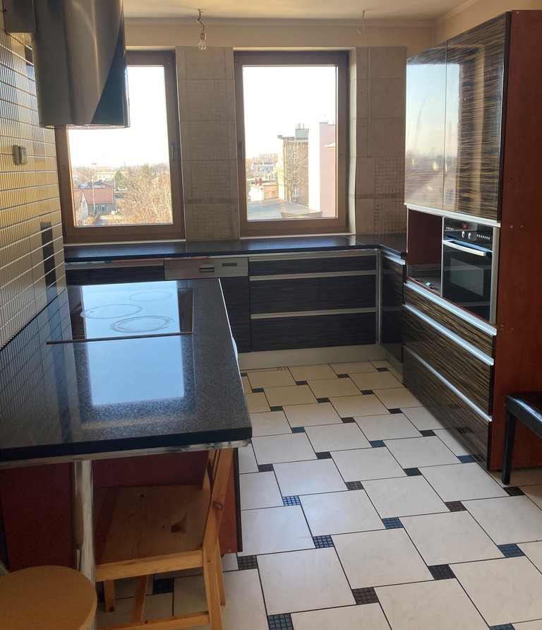 Ściany: gładzie, płytki ceramiczne w kuchni i łazienkach. Kuchnia: blaty granitowe, meble do zabudowy wraz ze sprzętem (Siemens: zmywarka, piekarnik, płyta elektr., automat do kawy, lodówko - zamrażarka)