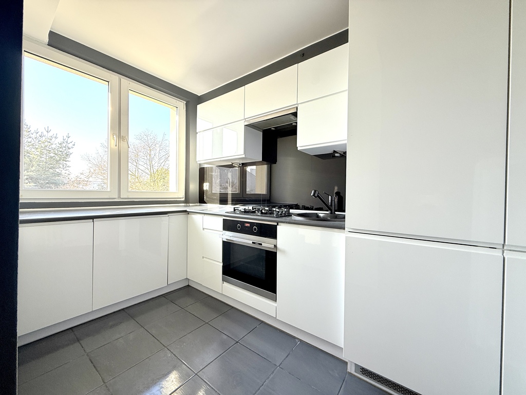 Duża, jasna w pełni wyposażona w nowoczesne meble w zabudowie z lodówką zmywarką, piekarnik z płytą gazową okapem i zlewozmywakiem. Wygodne miejsce do gotowania duży blat roboczy,