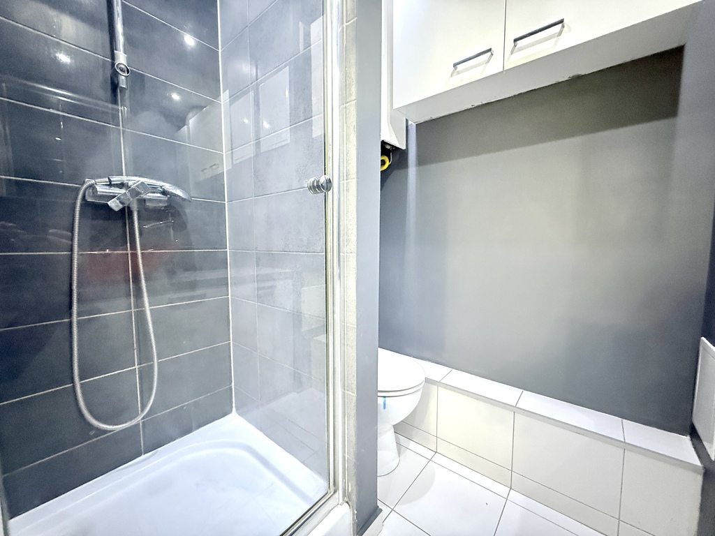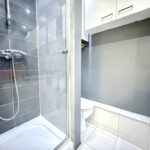 Wykafelkowana, z kabiną prysznicową, umywalką i wszystkimi niezbędnymi przyłączami.