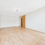 Pokoje na ścianach wykończone gładzią, na podłogach panelami.