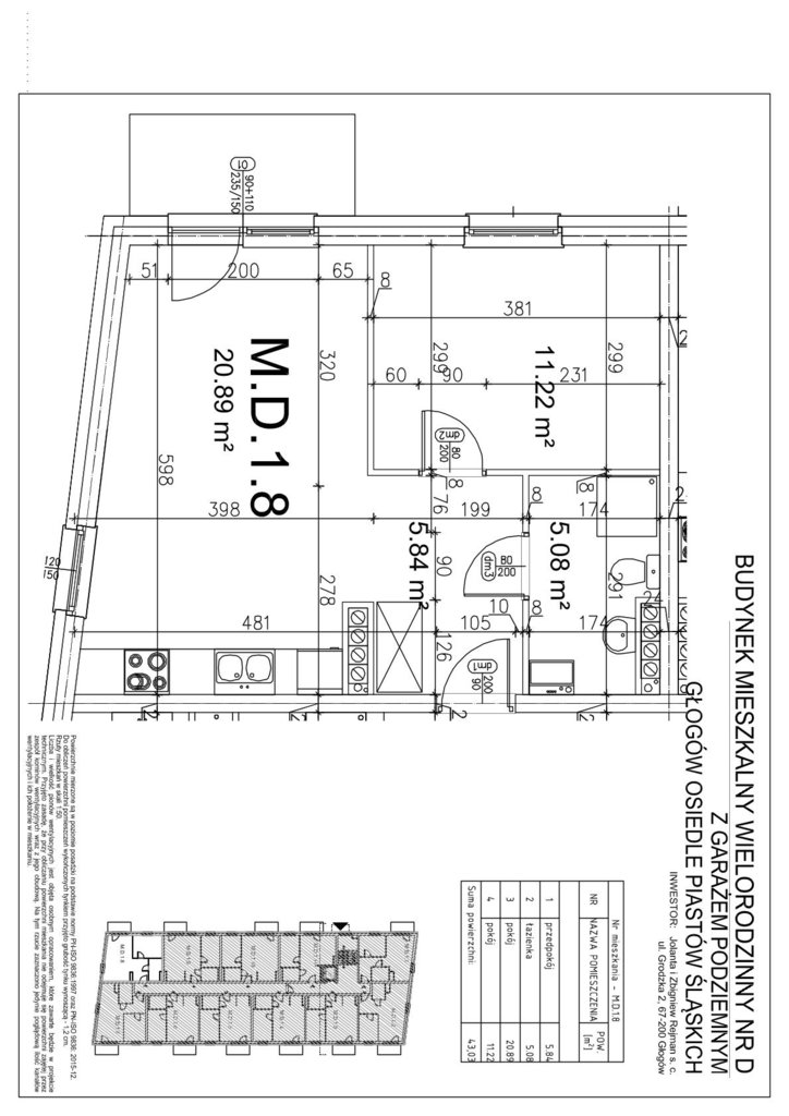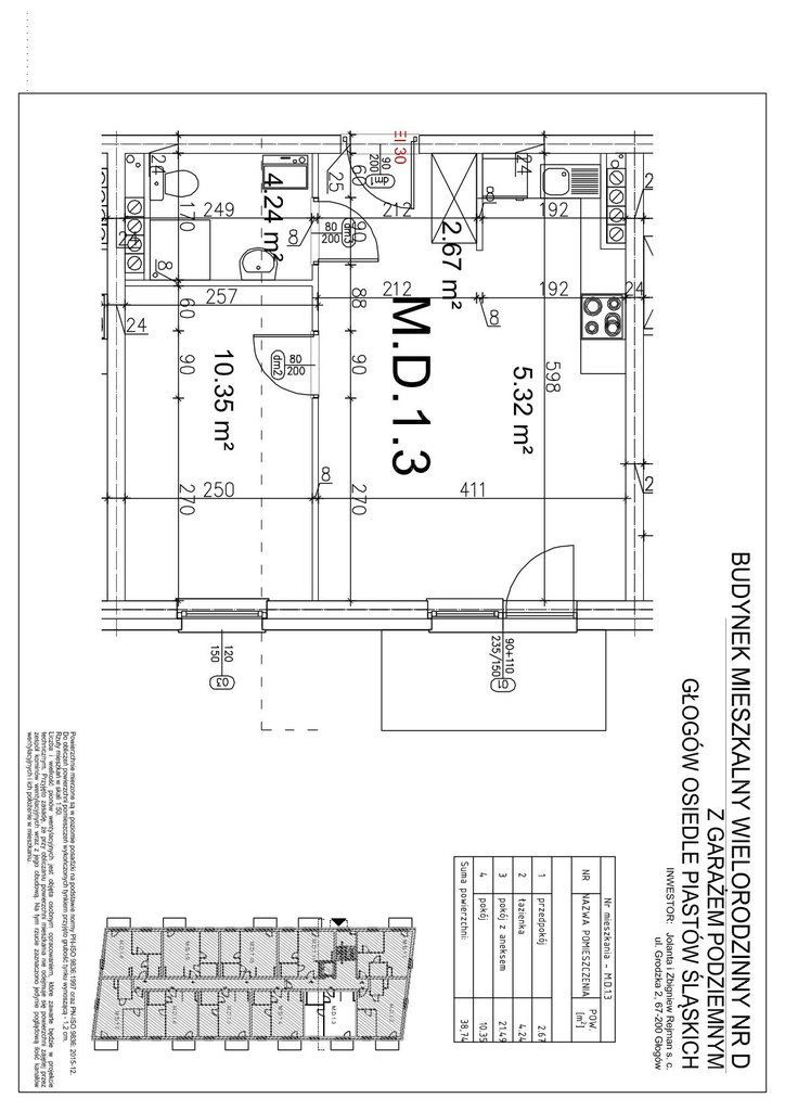 Mieszkania 2 pokojowe o powierzchni od: 38,20 m kw. do 43,03 m kw., taki metraż i układ mieszkań będzie na wszystkich 3 piętrach w budynku, który jest obecnie budowany. Na każdym piętrze 11 lokali