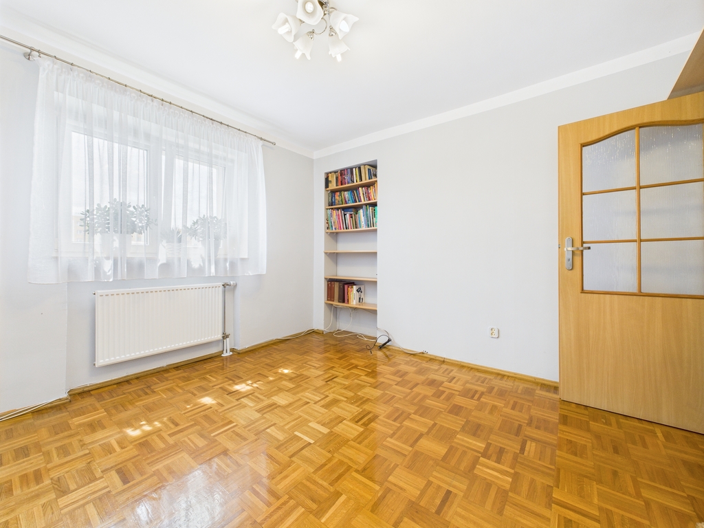 - na podłodze w pokojach i przedpokoju mozaika parkietowa, a w kuchni, łazience oraz toalecie terakota.