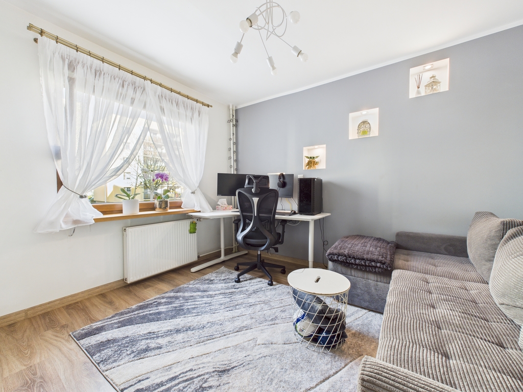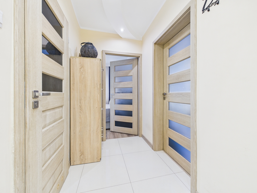 - podłogi: w pokojach – panele, w kuchni, przedpokoju, łazience oraz toalecie - płytki,