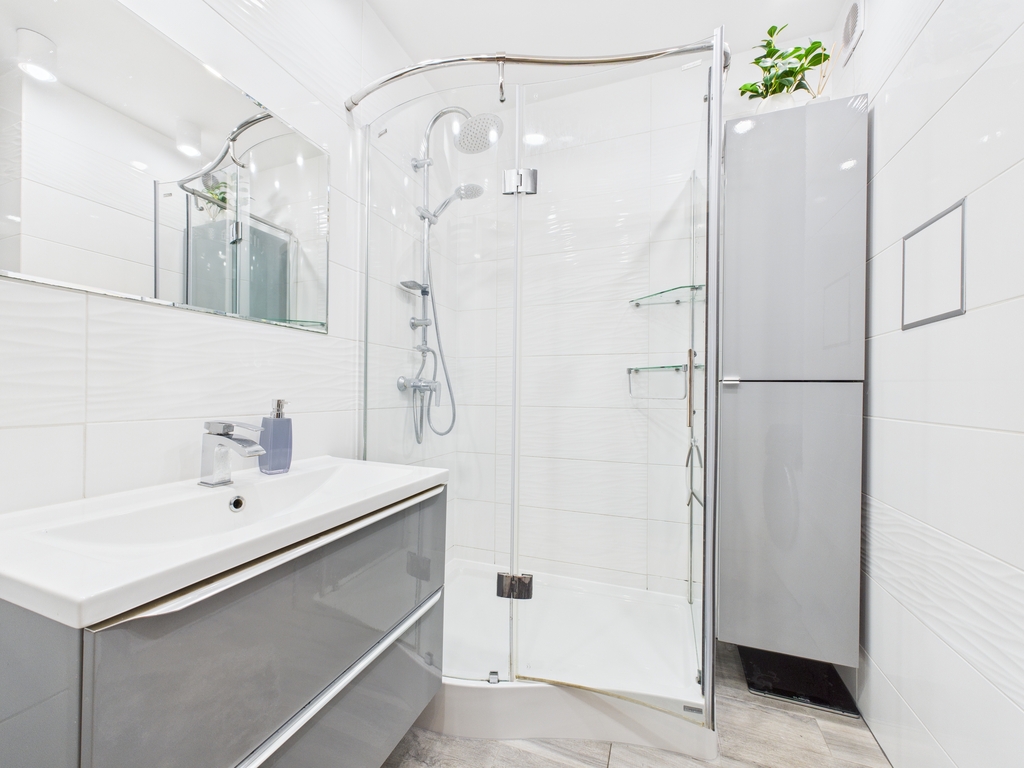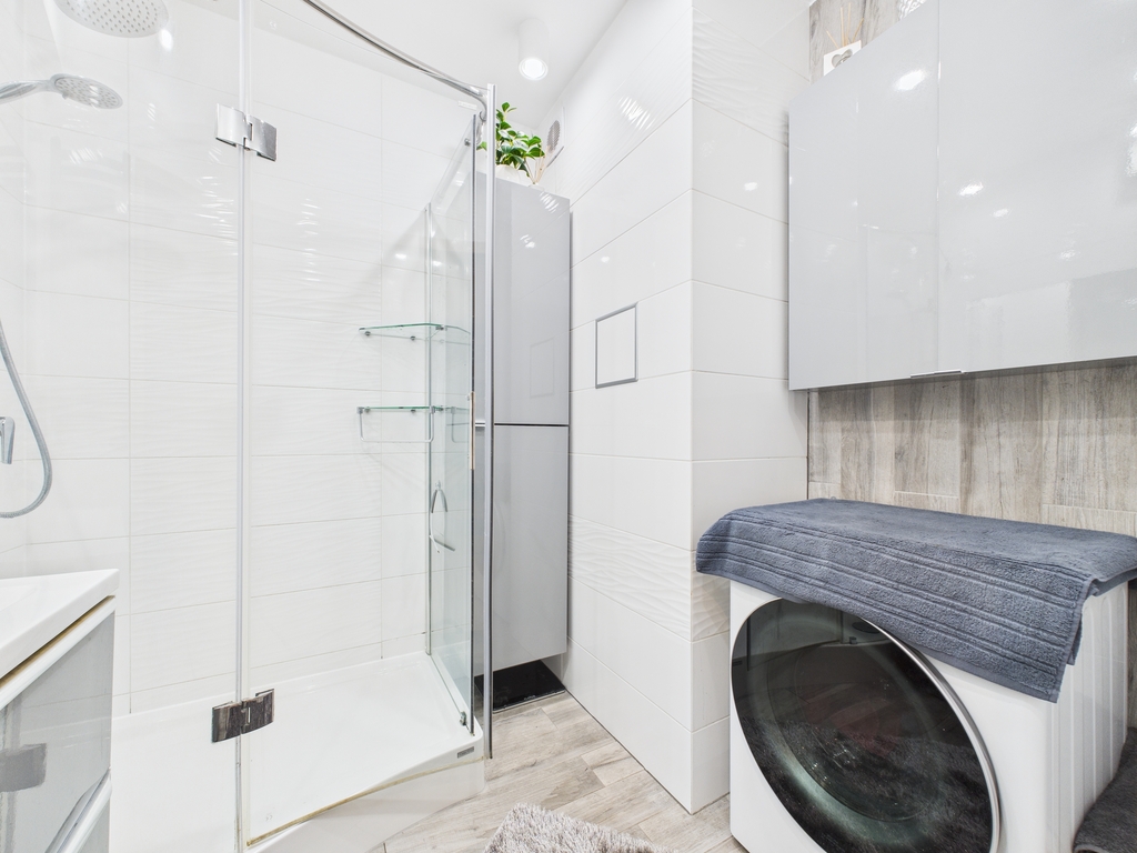 - łazienka wyposażona w kabinę prysznicową oraz umywalkę,