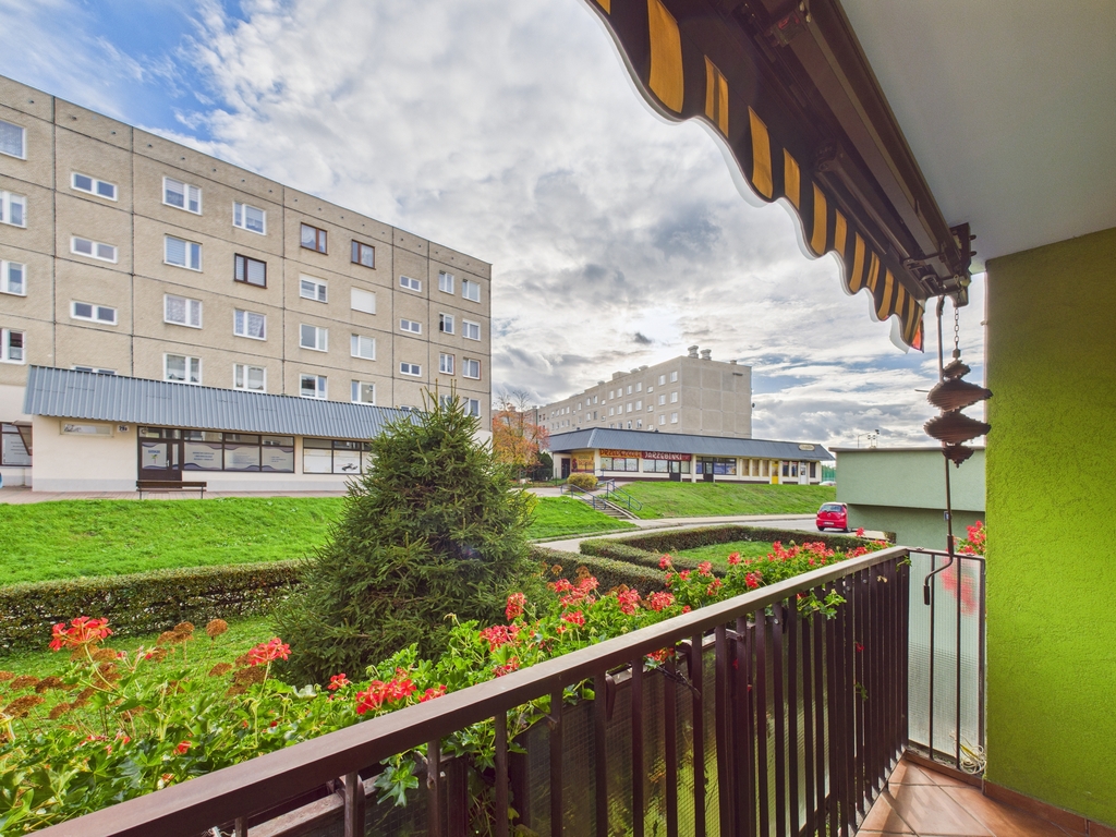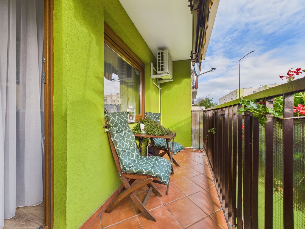 - balkon 5,40 m2 z przeciwsłoneczna, rozkładaną markizą.