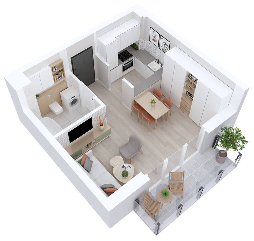 Przedstawione wizualizacje i grafiki mają charakter wyłącznie poglądowy i stanowią wyłącznie materiał pomocniczy, ułatwiający zorientowanie się w ogólnym wyglądzie oferowanej nieruchomości.