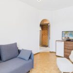 Kuchnia została odświeżona, w pełni wyposażona w sprzęt AGD (lodówka, kuchenka gazowa, piekarnik, mikrofalówka). Łazienka po remoncie, z kabiną prysznicową, pralką i zabudową na wymiar. Wszystkie pomieszczenia utrzymane w dobrym stanie technicznym, nie wymagają nakładów finansowych.
