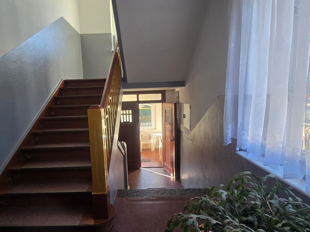 Nieruchomość znajduje się na 1. piętrze w zadbanym, kameralnym budynku (tylko 4 mieszkania). W pobliżu znajduje się m.in. sklep Dino - ok 200m (3 min pieszo) i stacja PKP - ok 700m ( 9min pieszo).