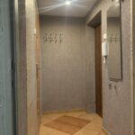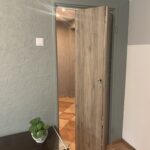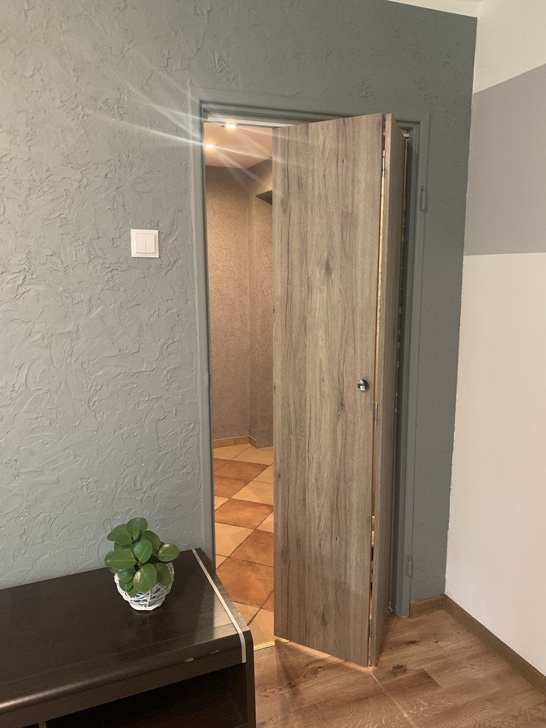Na podłogach zostały położone płytki podłogowe, oraz panele.