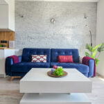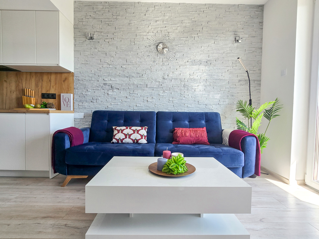 - salon z aneksem kuchennym  [ok 21m² ] oraz wyjściem na balkon