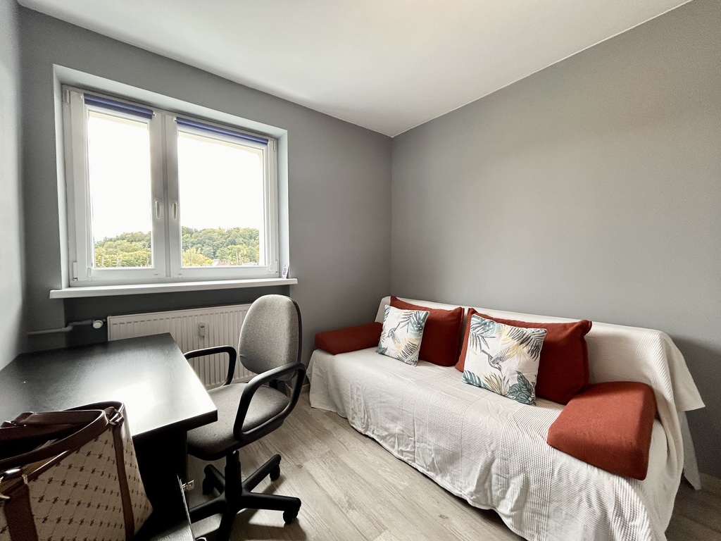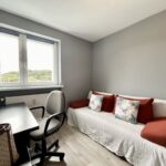 - przytulnej sypialni z wygodnym łóżkiem, biurkiem/toaletką oraz pojemną szafą z półkami.