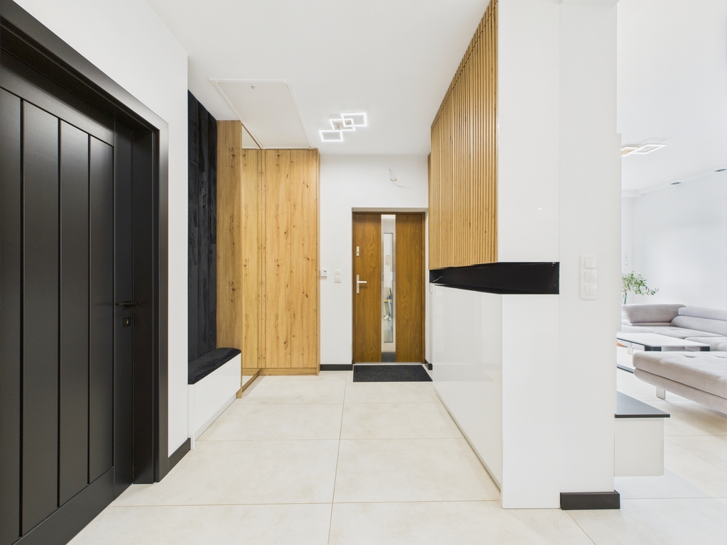 • Pomieszczenie gospodarcze/schowek – 4,43 m² (7,94  m² – po podłodze) – dodatkowa zamykana przestrzeń do przechowywania.