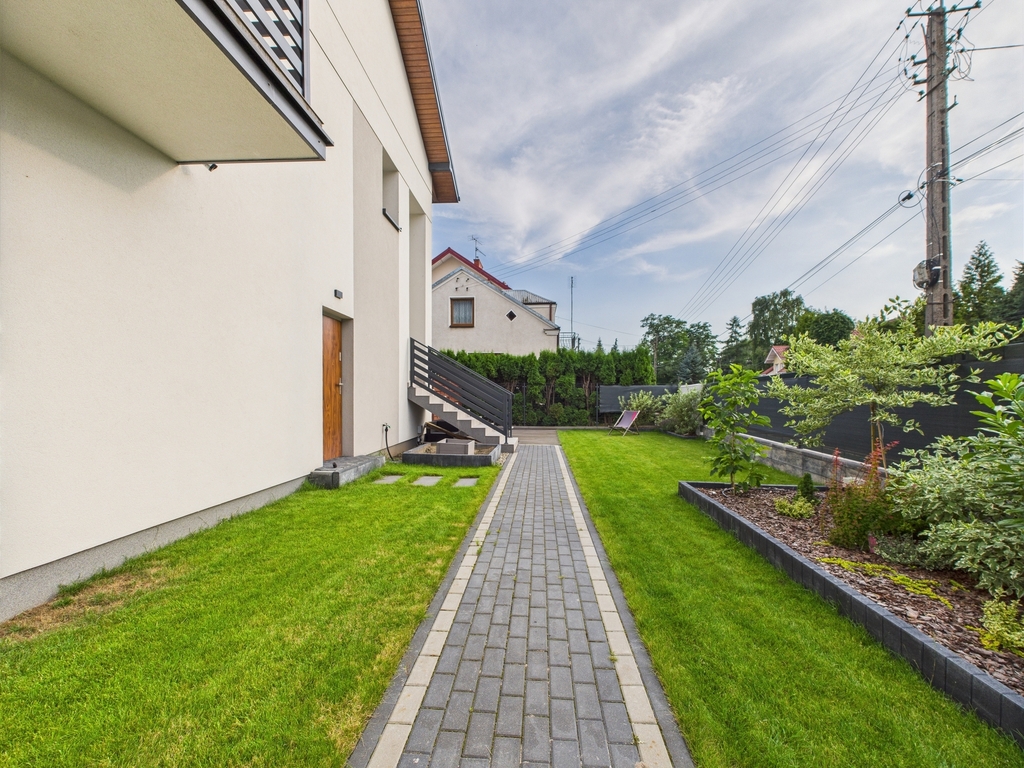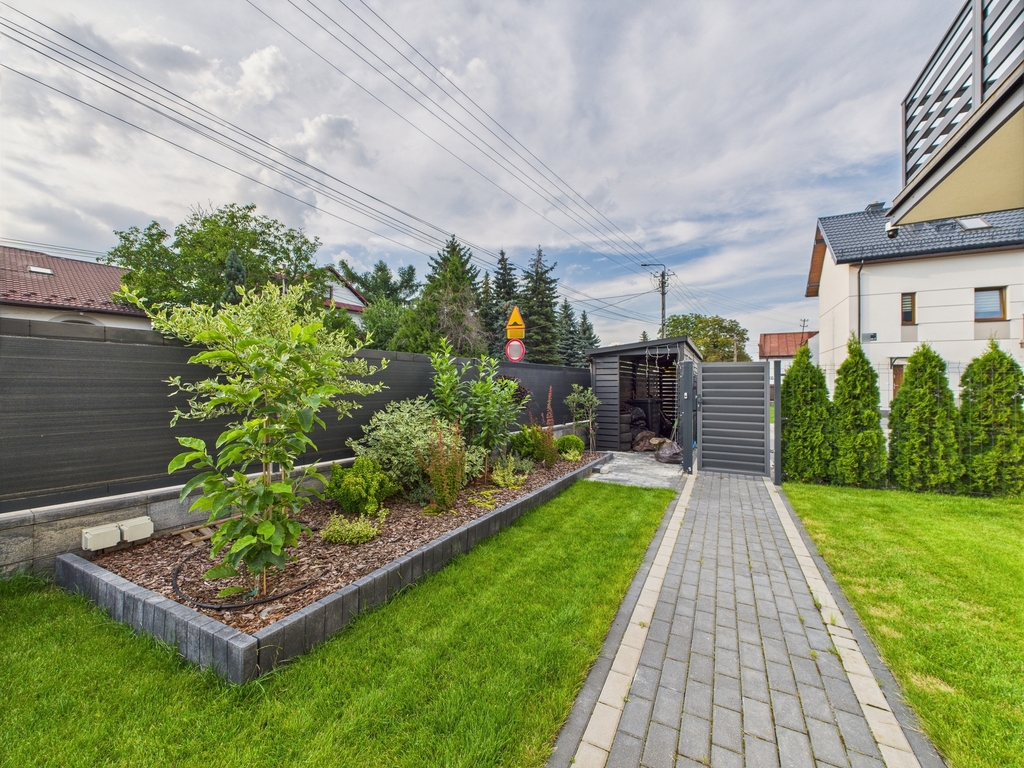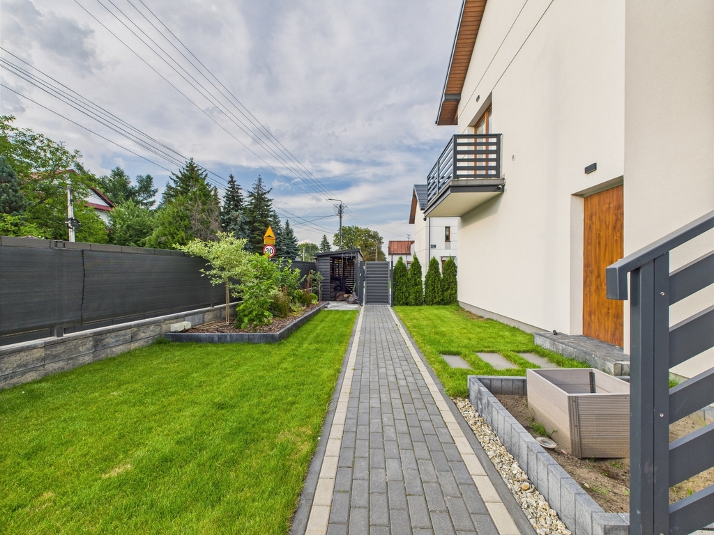 Ogródek: 106 m² – zagospodarowany, z automatycznym nawodnieniem i oświetleniem sterowanym aplikacją