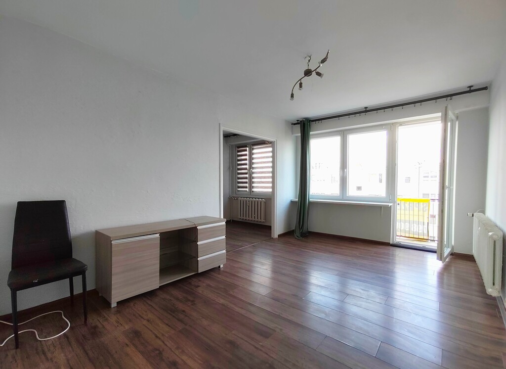 - słoneczny salon z wyjściem na balkon,