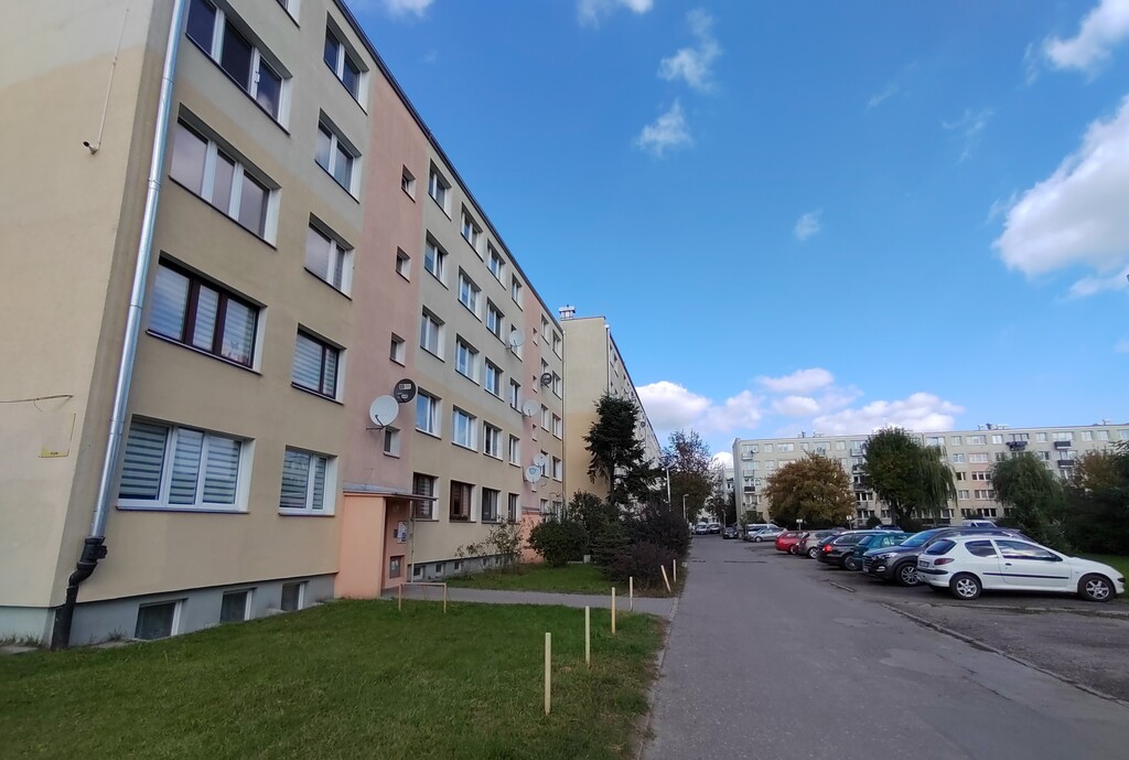 - niski blok w spokojnej, zielonej okolicy,
