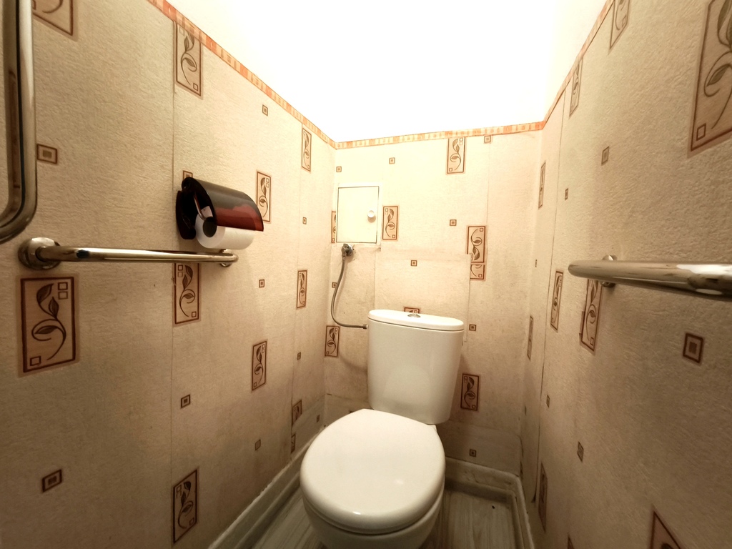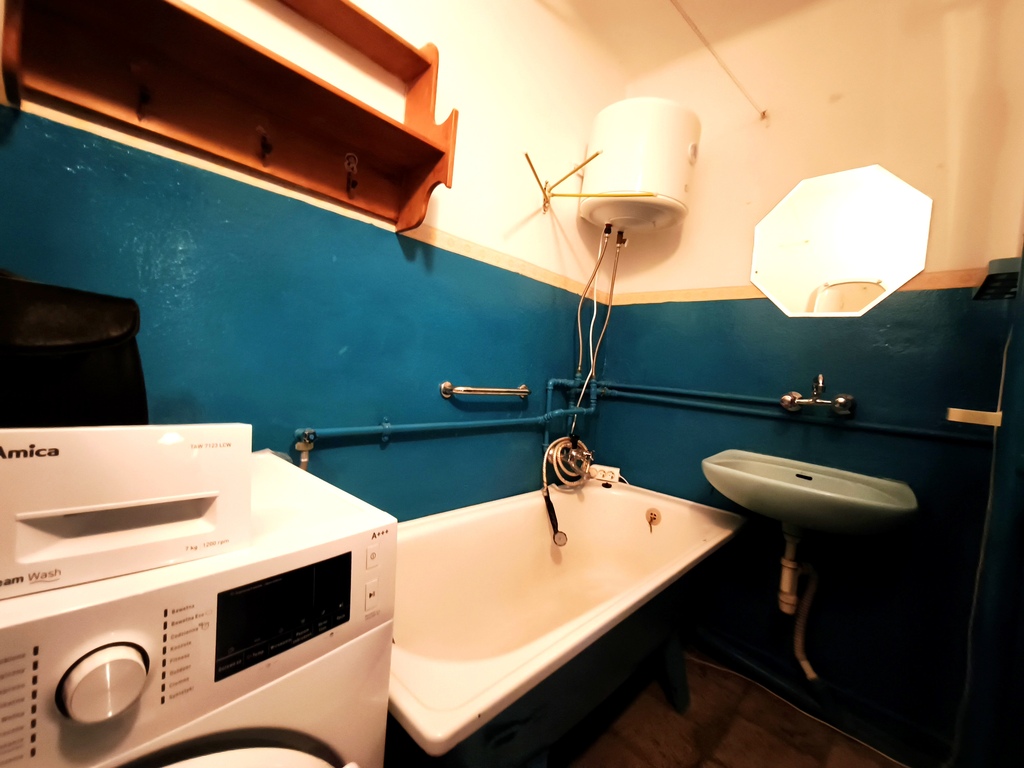Przestronna kuchnia sprzyja wspólnym chwilom, obok wygodna łazienka i osobne WC dla komfortu domowników i gości.
