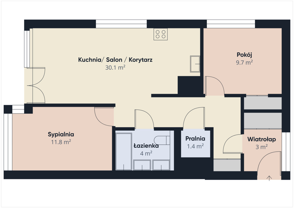 - pokój dzienny z aneksem kuchennym,