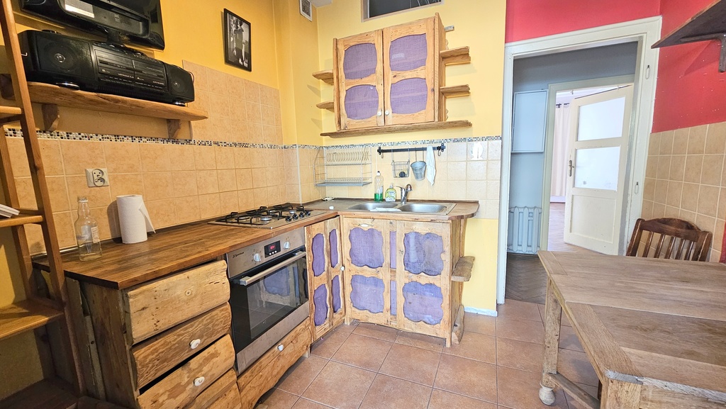 Jasne, 2-pokojowe mieszkanie z przestronną kuchnią położone na drugim piętrze budynku z 1940 roku. Kamienica jest zadbana, ma odnowioną klatkę schodową. Mieszkanie może stanowić dobrą inwestycję pod wynajem dzięki praktycznemu zaplanowaniu pomieszczeń.