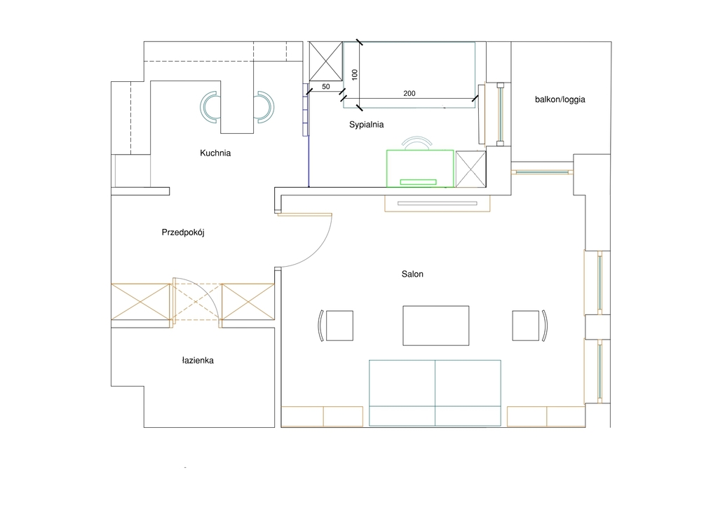 Układ pomieszczeń: - przestronny salon z częścią wypoczynkową – ok. 16,5 m²