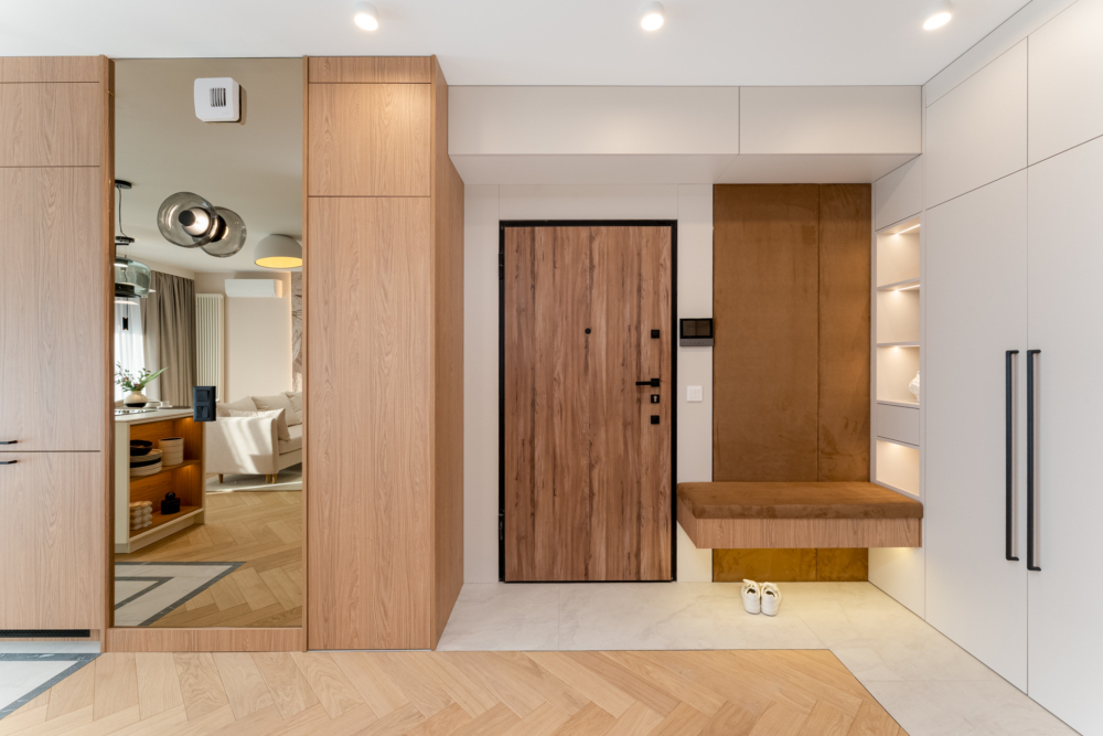 • Przedpokój (8,3 m²) z szafami w zabudowie