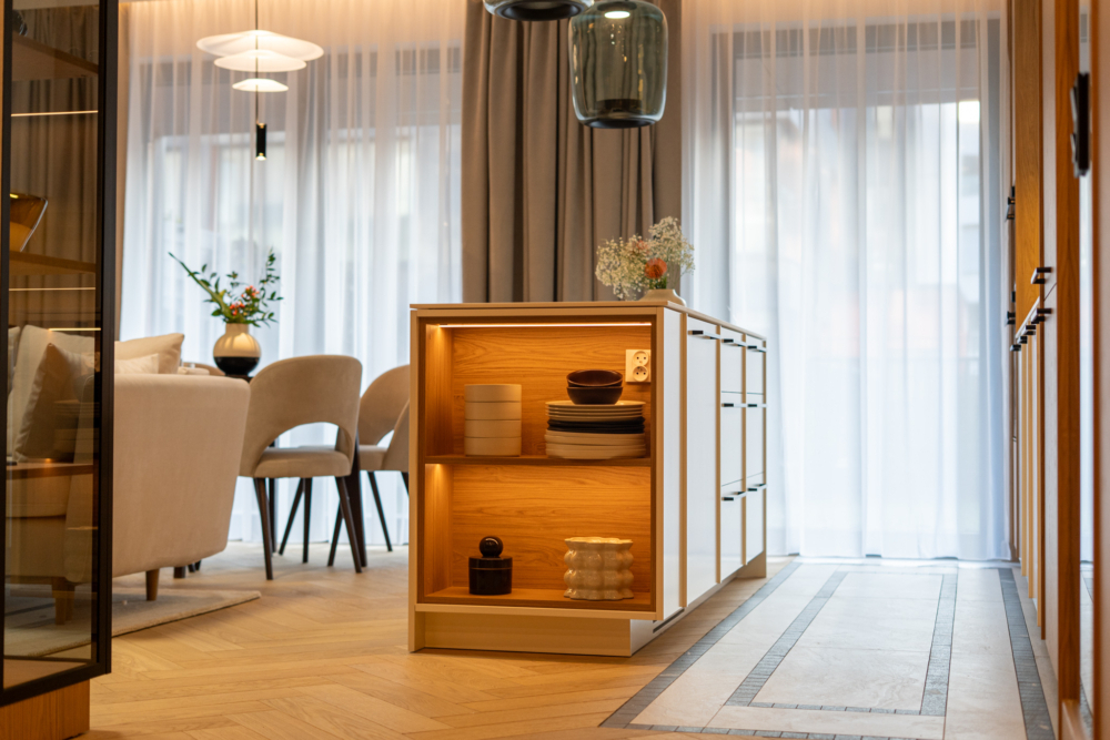 • Wprowadzasz się bez kompromisów – wnętrza wykończone w wysokim standardzie, meble wykonane przez stolarza.