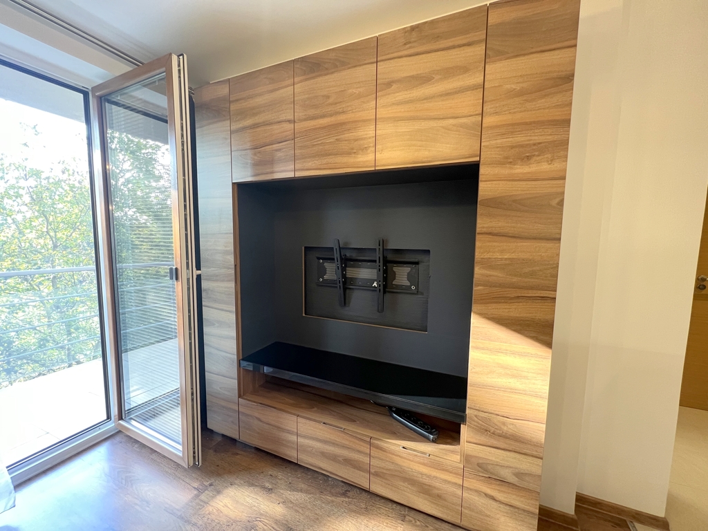 Mieszkanie składa się z salonu z aneksem kuchennym, sypialni, łazienki, oraz przedpokoju.