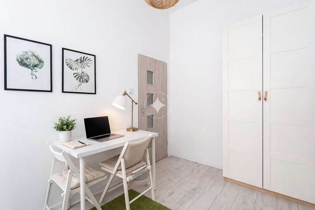 Największym atutem mieszkania jest jego położenie od strony wewnętrznego podwórza. Dzięki temu zyskujesz spokój i prywatność, których bardzo trudno szukać w tej części miasta.