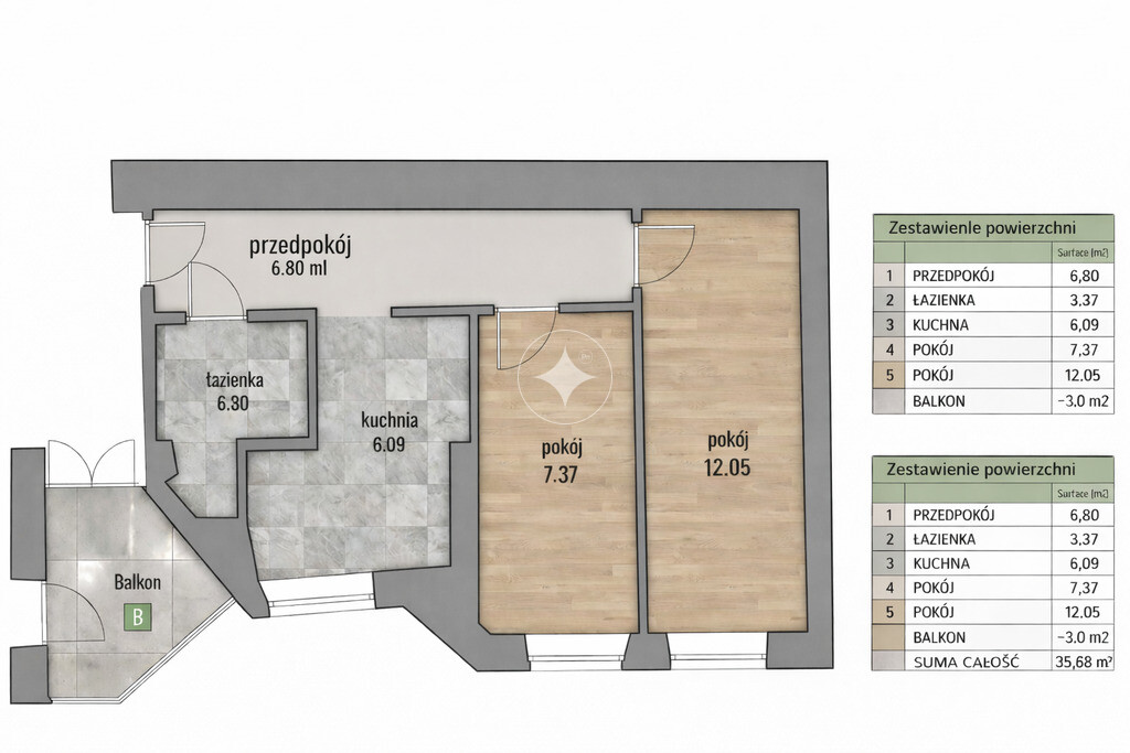 Najważniejsze informacje- powierzchnia: 35,85 m²