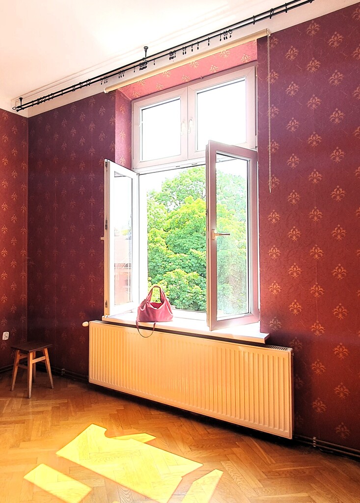 mieszkanie wysokie i jasne, ponieważ jest na 3 piętrze z 4, orientacja południowa dla pokoi, północna dla kuchni