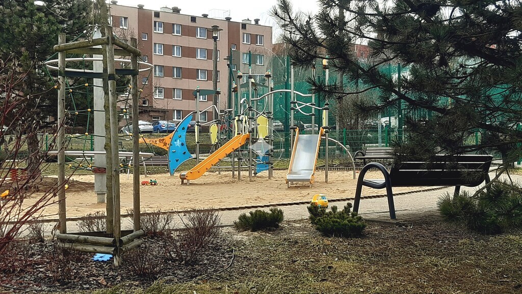 duże atrakcyjne 2 place zabaw dla dzieci przy bloku