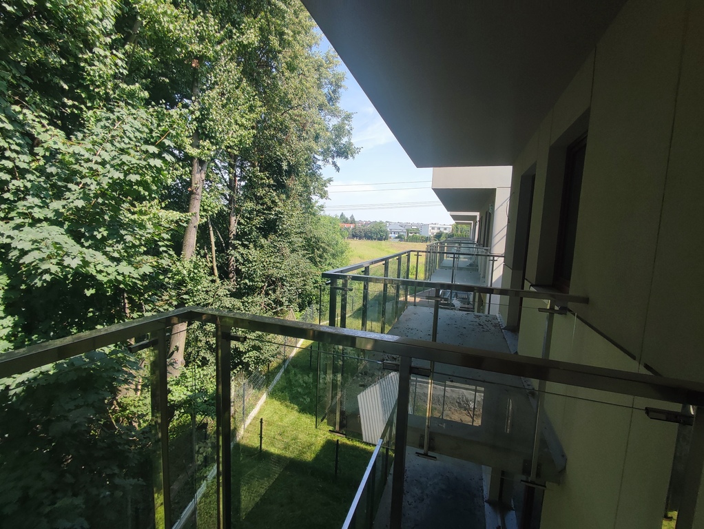 Do mieszkania przynależą dwa duże balkony z widokiem na tereny zielone gęsto zadrzewione.