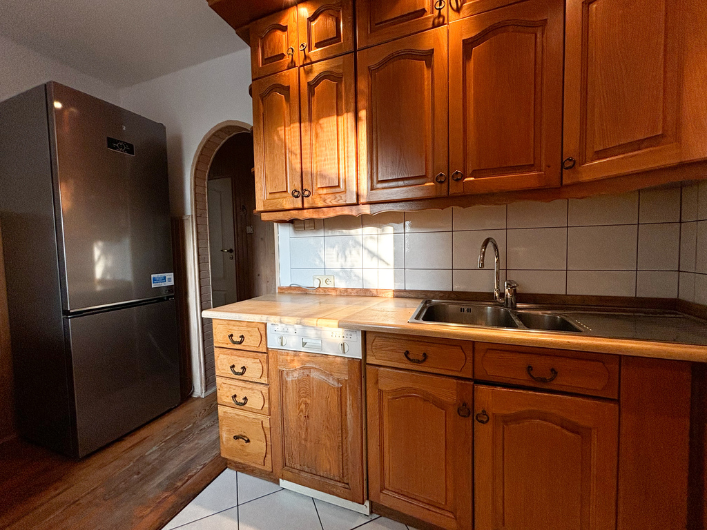 Mieszkanie wyposażone we wszystkie potrzebne sprzęty: zmywarka, pralka, lodówka, piekarnik oraz meble w pokojach.