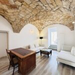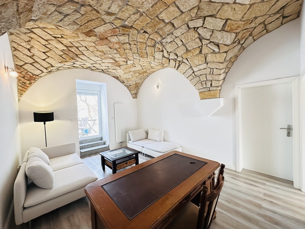 - Trzeci pokój z wyjściem na ogród – wyposażony w dwie kanapy oraz biurko, do użytku według własnych potrzeb