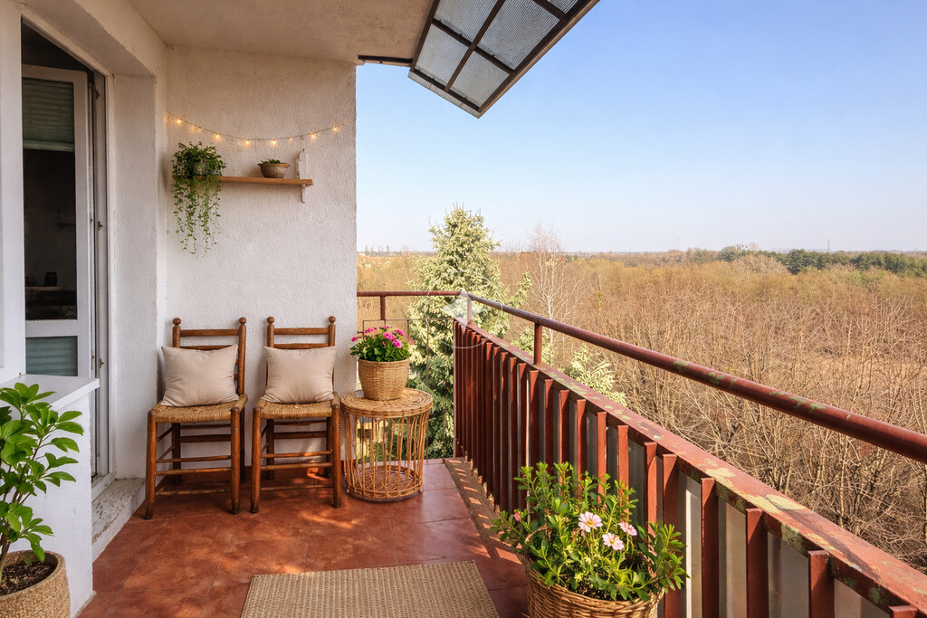 - Balkon: Klasyczny balkon z widokiem na okolicę.
