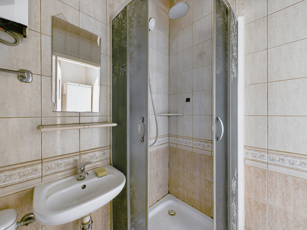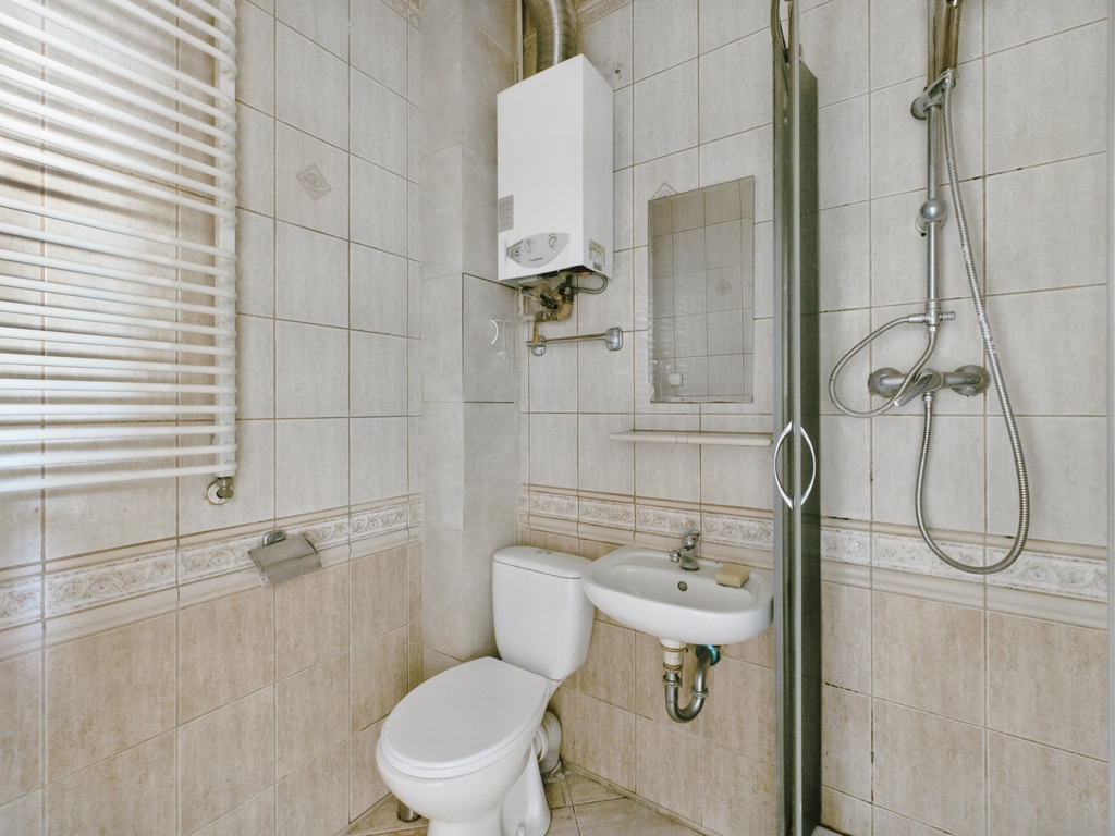 Ogrzewanie miejskie bez podzielników, ciepła woda pochodzi z podgrzewacza gazowego typu JUNKERS.