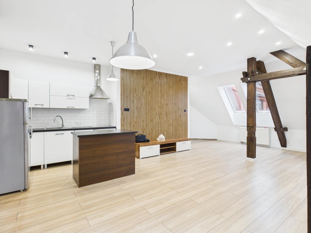 -Przestronny salon połączony z kuchnią,