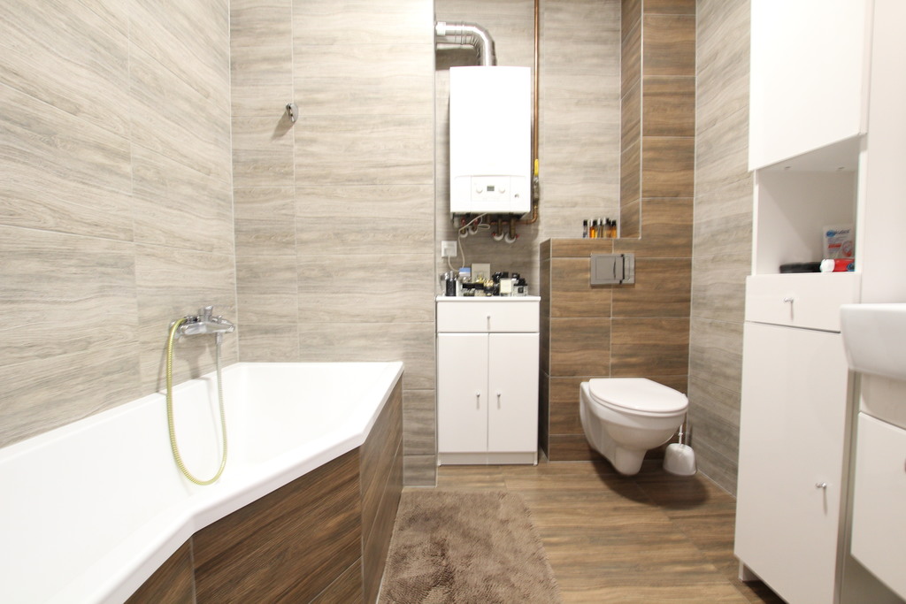 Ogrzewanie i ciepła woda pochodzą z pieca gazowego dwufunkcyjnego..