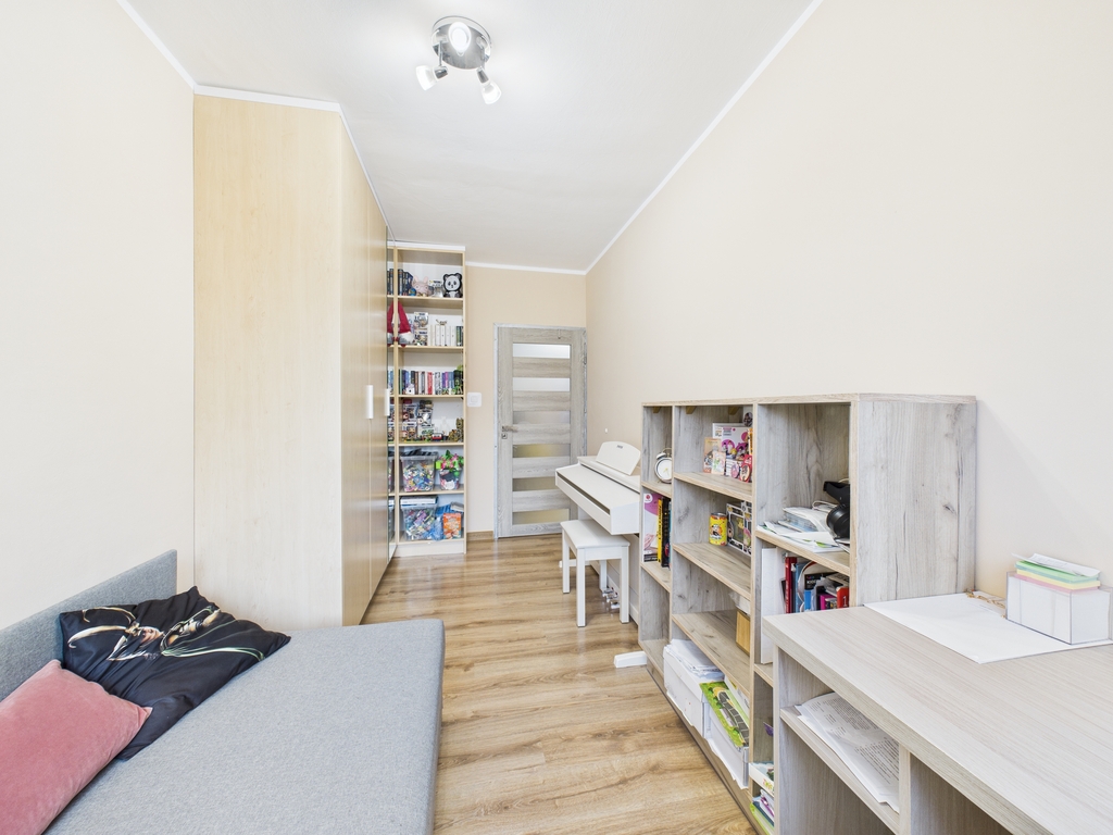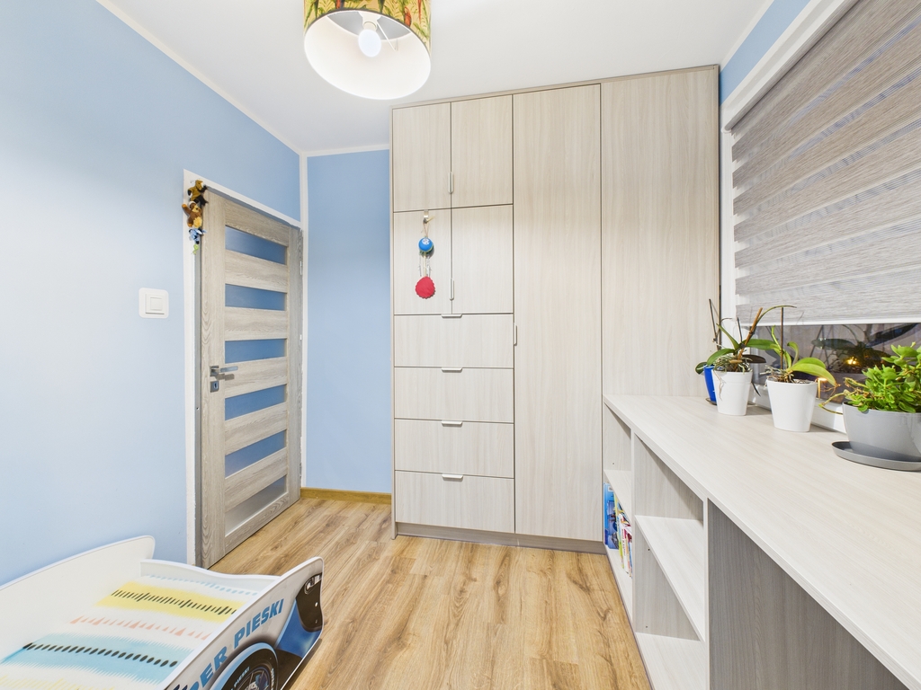 W pokojach dziecięcych znajduje się nowa zabudowa meblowa pod wymiar.