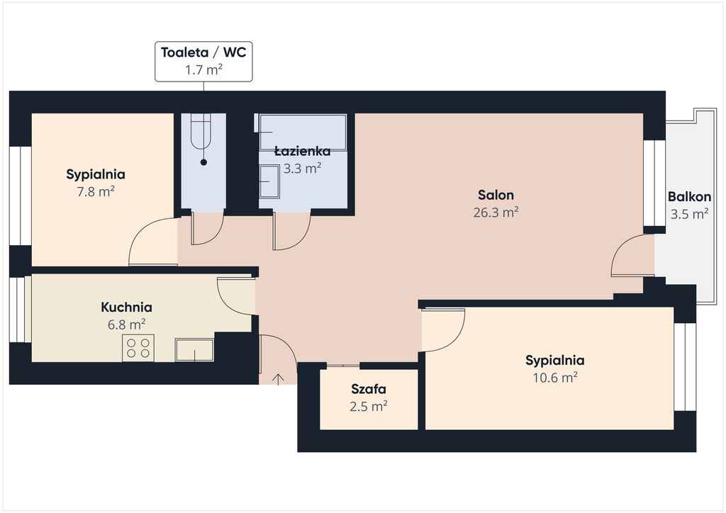 Przedstawione wizualizacje i grafiki mają charakter wyłącznie poglądowy i stanowią wyłącznie materiał pomocniczy, ułatwiający zorientowanie się w ogólnym wyglądzie oferowanej nieruchomości.