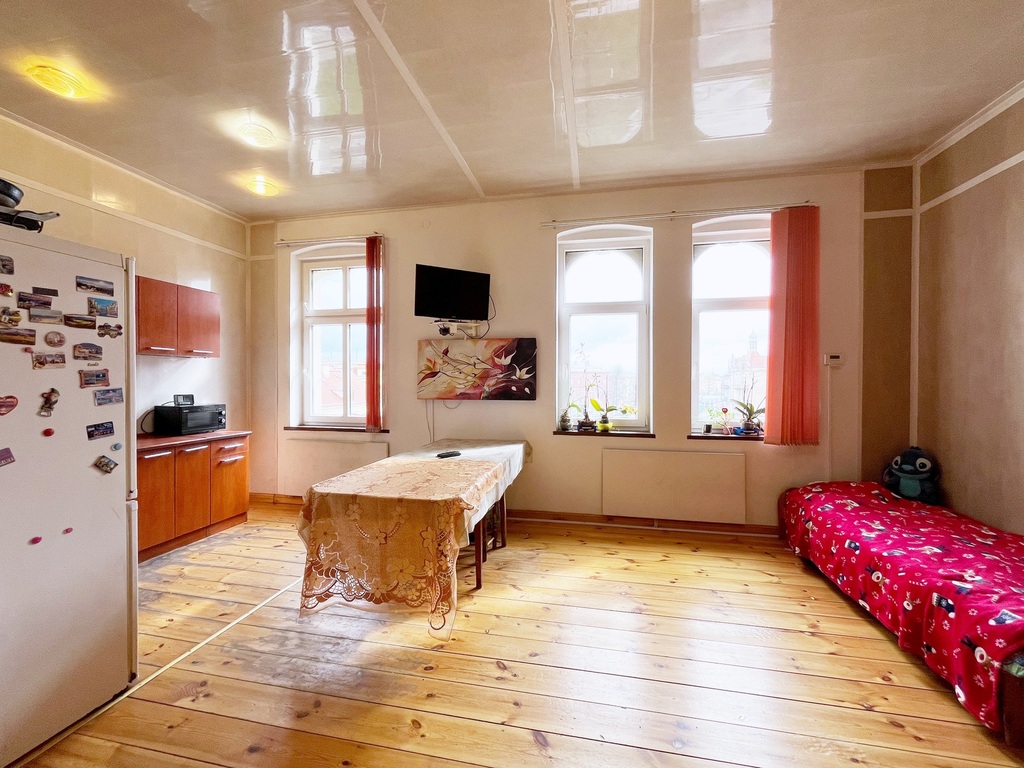 Na sprzedaż nieruchomość o powierzchni 57,90 m2 +  0,70 m2 komórka. Mieszkanie znajduje się na 3 piętrze w kamienicy, blisko Centrum Miasta. Lokal składa się z salonu z aneksem kuchennym, sypialni, łazienki z WC i przedpokoju. Budynek w dobrym stanie technicznym, wymienione okna i drzwi wejściowe do budynku, zamontowany monitoring.