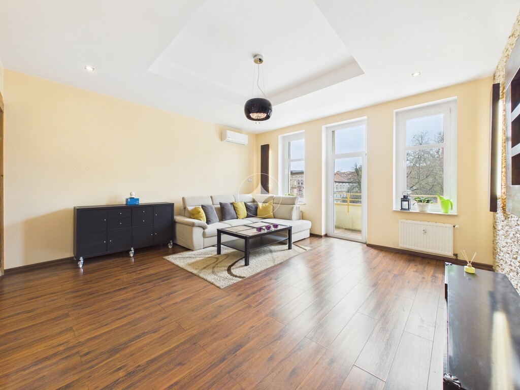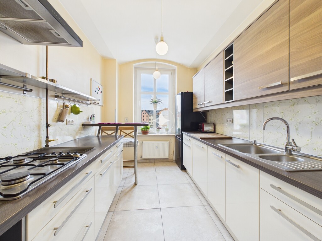 Trzypokojowe mieszkanie o powierzchni 98.30 m2 położone na trzecim piętrze czteropiętrowej kamienicy.